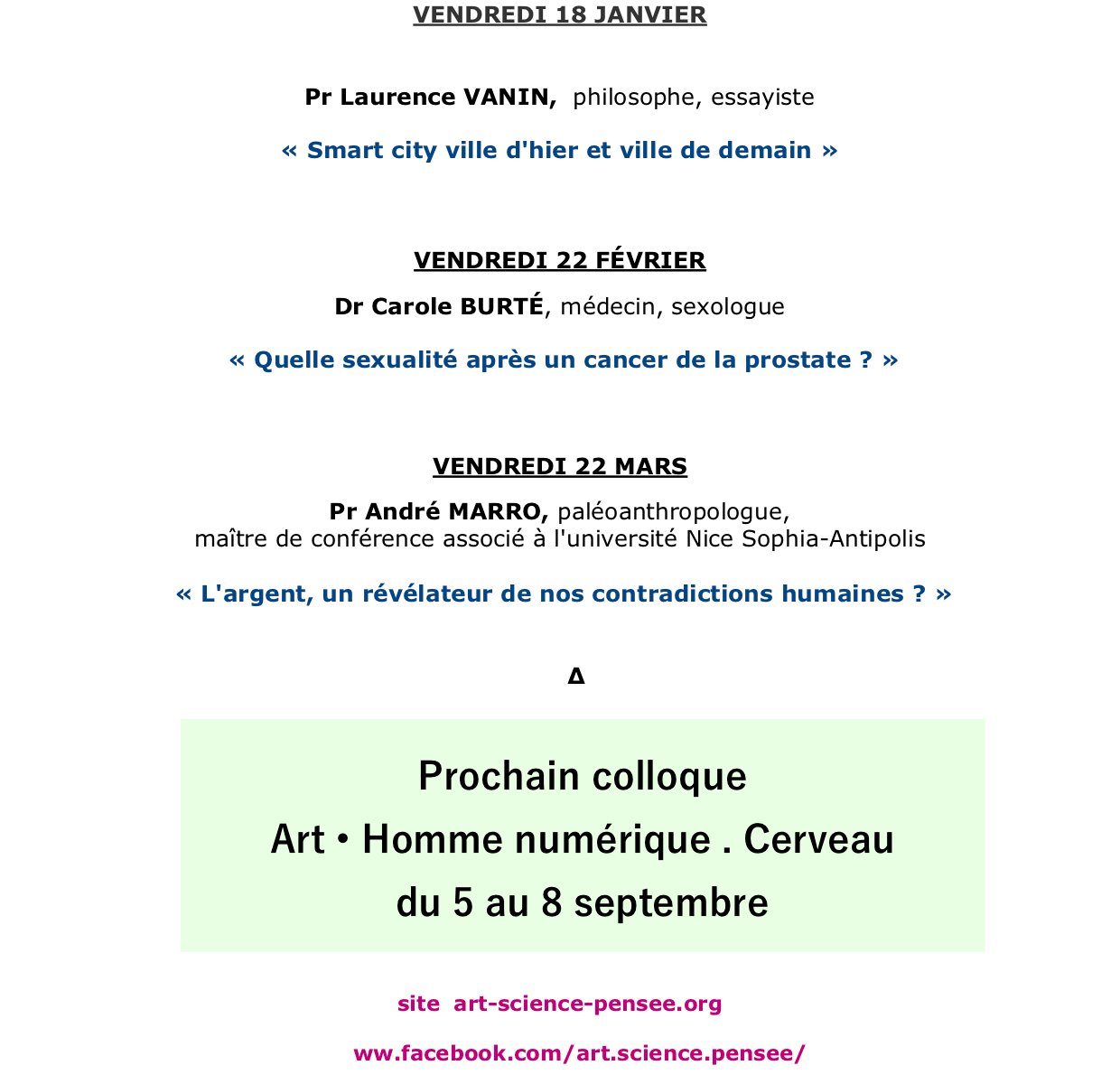 Je vous souhaite tous mes meilleurs vœux pour 2019 avec le programme de nos conférences du premier trimestre .